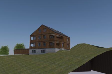 Ersatz des bestehenden landwirt- schaftlichen Wohngebäudes mit Ökonomieteil durch einen Neubau mit 3 Wohnungen, Garage und Remise.